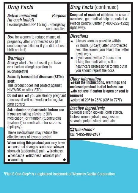 EMERGENCY CONTRACEPTIVE: Other 1.5 mg levonorgestrel emergency contraceptive products include Plan B One-Step.
